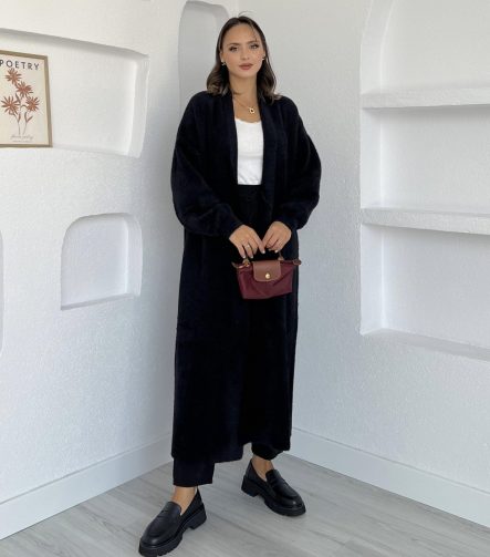 Short Fur Black Coat 13828