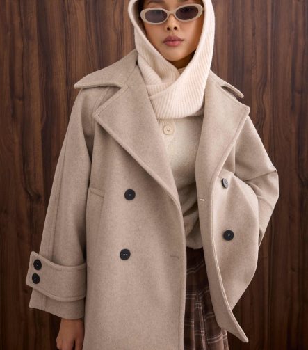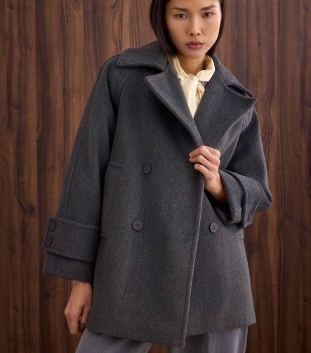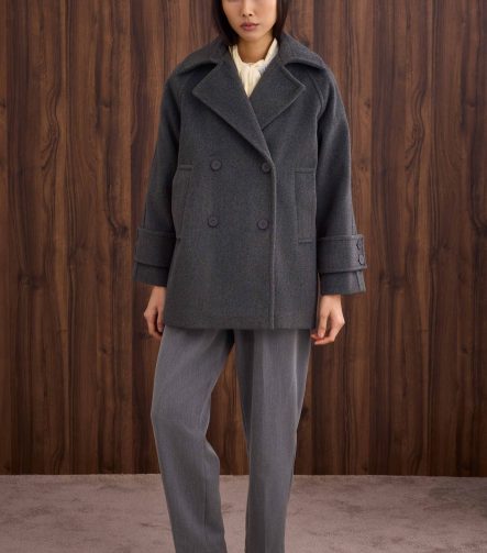 Short Double-Breasted Coat in Anthracite