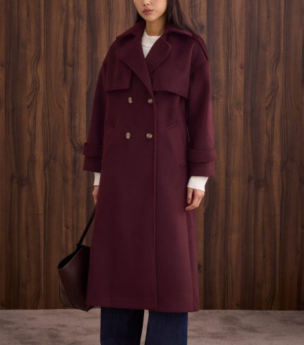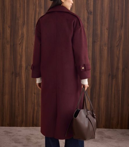 Belted Wool-Blend Coat – Burgundy