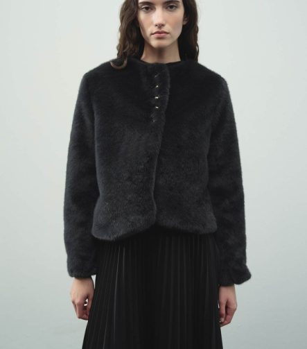 Short Buttoned Plush Anthracite Jacket