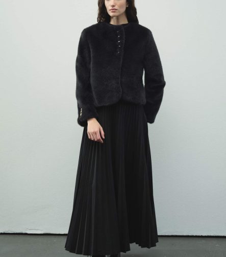 Short Button Plush Black Jacket