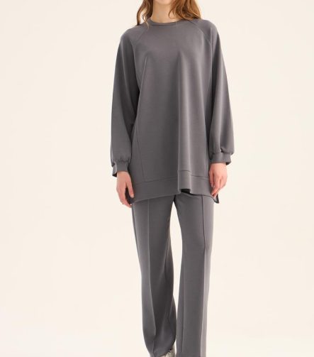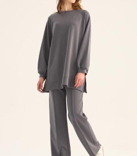 Çağla Green Side Slit Compact Sweatshirt