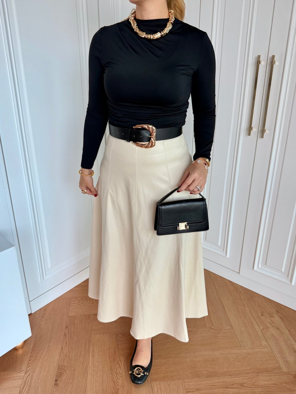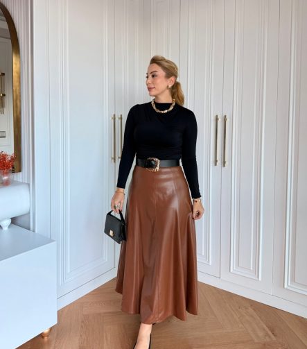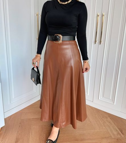 Button-Detail Black Leather-Look Skirt ETK-0194