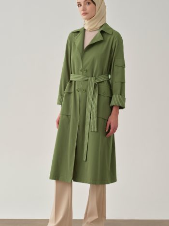 Striped Printed Trench Coat with Pockets – Olive