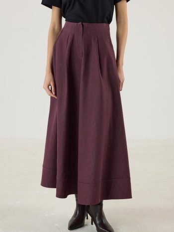 ÜRÜN TANIMI Rita piliseli anvelop etek bordo, cupra karışımlı yumuşak dokulu kumaşıyla konforlu bir şıklık sunar. Yüksek belli tasarımı, vücut