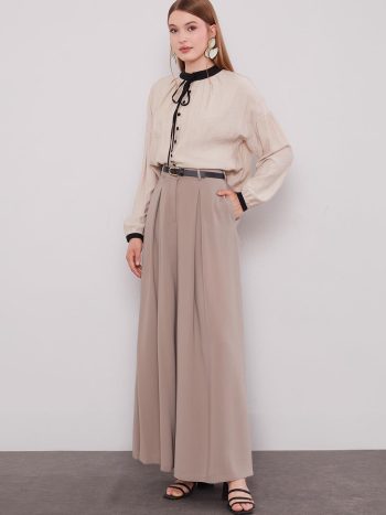 Mink Wide-Leg Pleated Pants Skirt