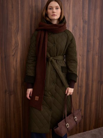 Long Quilted Coat Dark Khaki