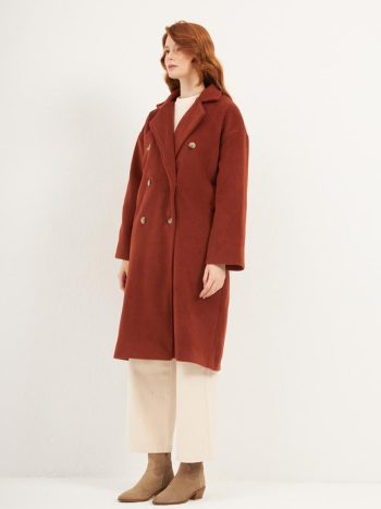 Peplum Double-Breasted Coat Brick
