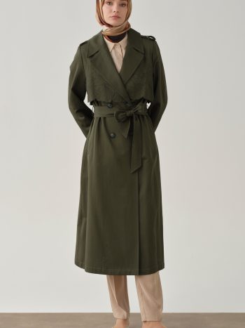 Embroidered Detail Trench Coat – Khaki
