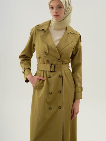 Crossover Coat with Slit – Olive