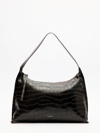 Large size tote bag with crocodile leather appearance, featuring interior pocket detail, zipper closure, leather lining. Lining: 100% Polyester Main