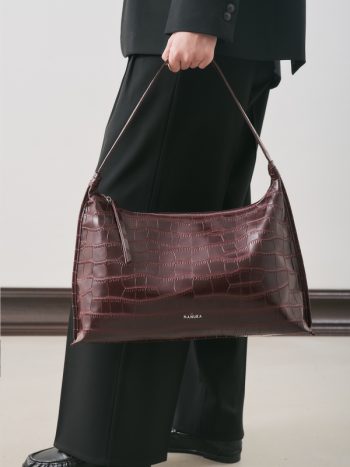 CROCODILE EMBOSSED LEATHER TOTE BAG IN BROWN