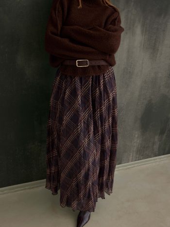 This crinkled checkered skirt, made from 100% cotton voile fabric, offers a lightweight and breathable wear thanks to its natural