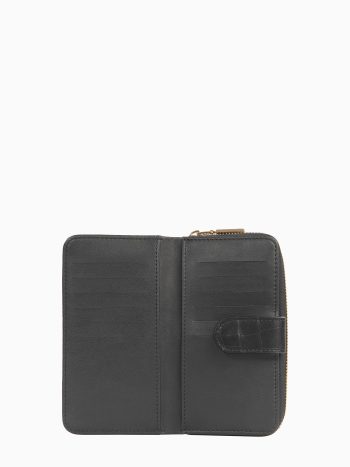 Snap-Closure Crocodile Wallet – Black