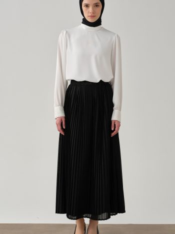 Zarif pile detayları ve konforlu tasarımıyla öne çıkan beli lastikli pile etek, klasik ve modern şıklığı bir araya getiriyor. Esnek
