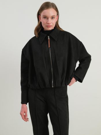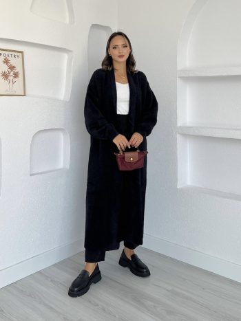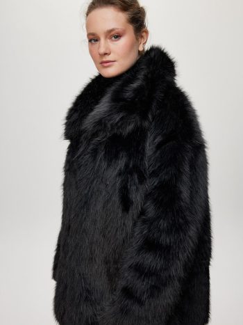 Short Fur Black Coat 13828 Our plush coat model stands out with its eye-catching texture and modern cut, keeping you