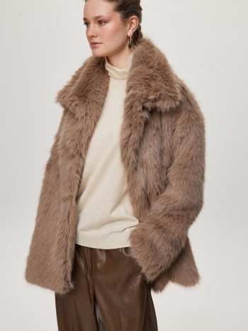Short Fur Brown Coat 13828 Our plush coat model stands out with its eye-catching texture and modern cut, keeping you