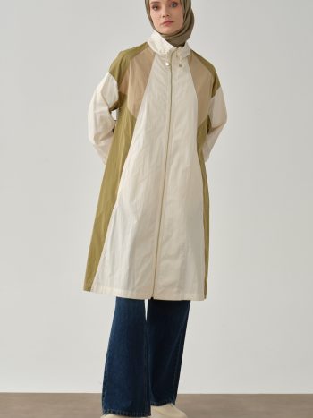 Notched Detail Raincoat – Ecru – Olive