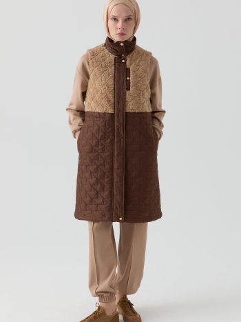 Plush-Trimmed Quilted Vest – Coffee
