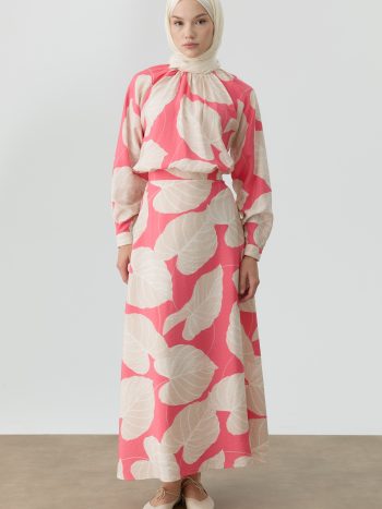 Floral Desenli Godeli Etek – Pembe