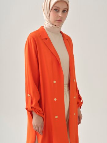 Slit Jacket with Collar Strap Detail – Coral