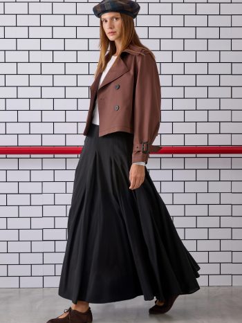Double-breasted long trench coat with a storm flap, epaulet details on the shoulders and sleeves. Made from lightweight micro-technical fabric,