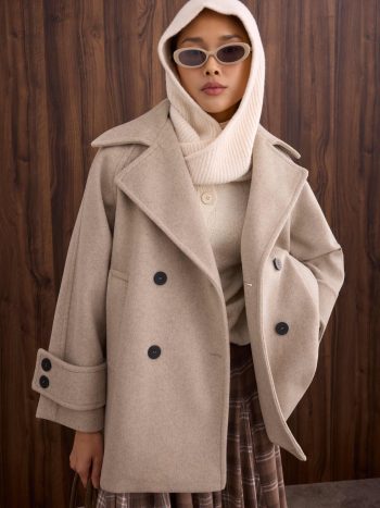 Crafted from premium wool blend, this coat features a button-up front, welt pockets, raglan sleeves, epaulet detailing on the cuffs,