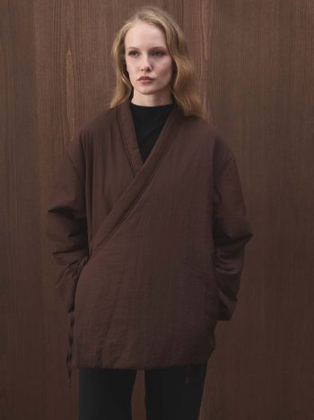 ANVELOP WRAP TIE INFLATABLE COFFEE COAT FEATURES Kimono collar, tie detail, dropped shoulders, hidden pocket detail, comfortable cut, unlined wrap