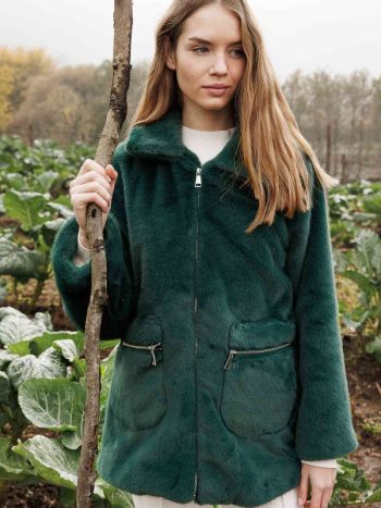 Plush Coat Features Front zipper closure, collar, front zipper pocket, lined, non-shedding plush coat. 100% Polyester Dry clean only. Do