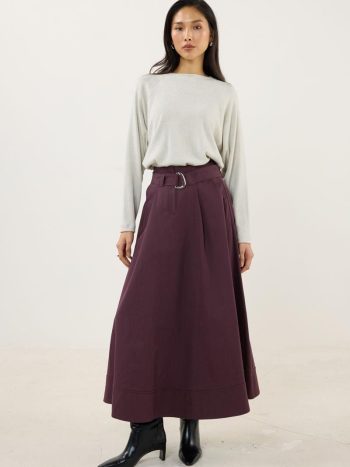 Plum Split Hem Belted Skirt