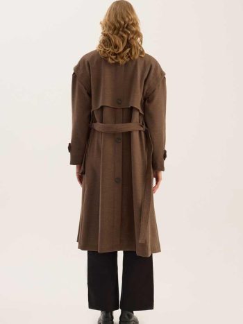Kemik Tokalı Trençkot Kum