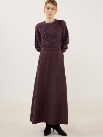 Burgundy Suede Flare Skirt