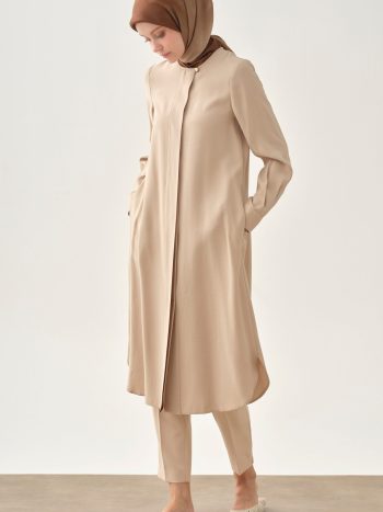 Elegant Beige Coat with Hidden Placket