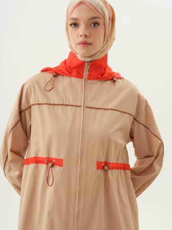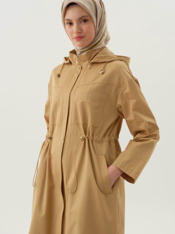 Hooded Coat with Pocket Details – Camel