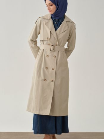 Kemerli Apoletli Trençkot – Bej