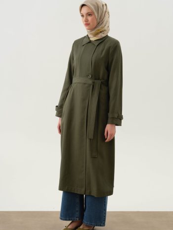 Crossover Polo Collar Trench Coat – Khaki