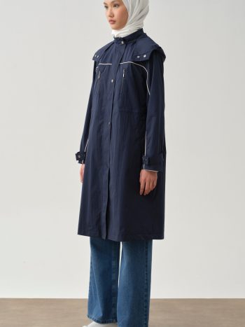 T-Sleeve Garni Piping Hooded Trench Coat – Indigo