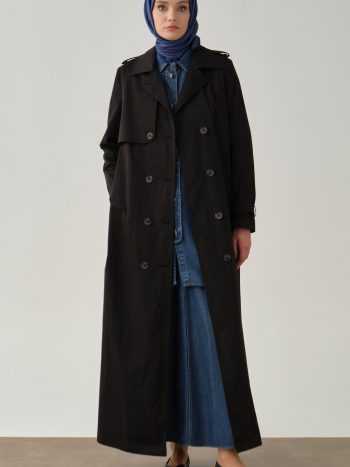 Offering a modern and elegant stance with its wide cuff details, this coat combines style and comfort. Its fluid cut