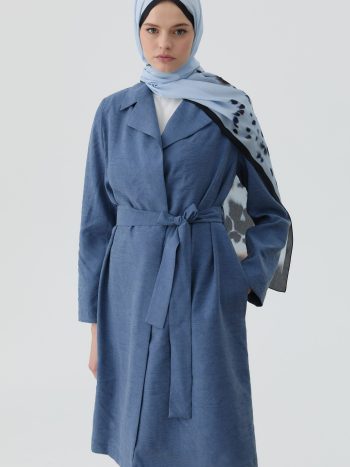 This long coat elegantly accentuates the silhouette with its belt detail and brings out the chicness with its simple design.