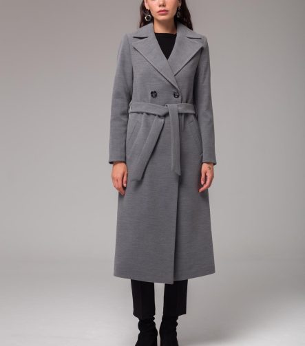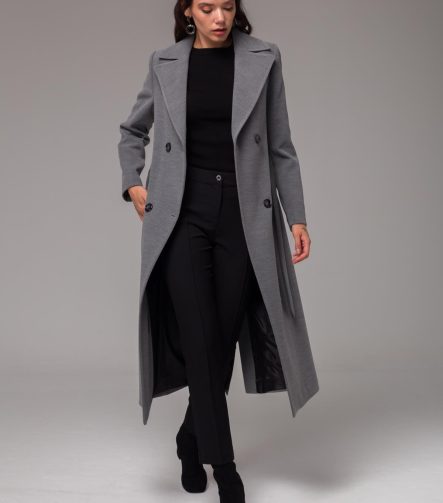 Grey Mid-Length Belted Crossover Coat 3754