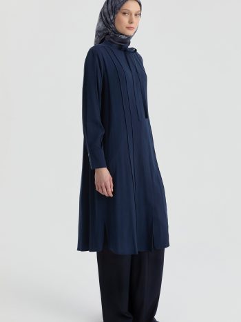 Tunic with Drawstring Neckline Detail – Navy Blue