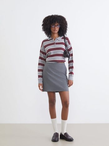 XSIDE Gray Striped Polo Neck Oversized Women’s Knit Sweater is available at LCW with special discounts, installment plans, and cash