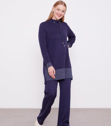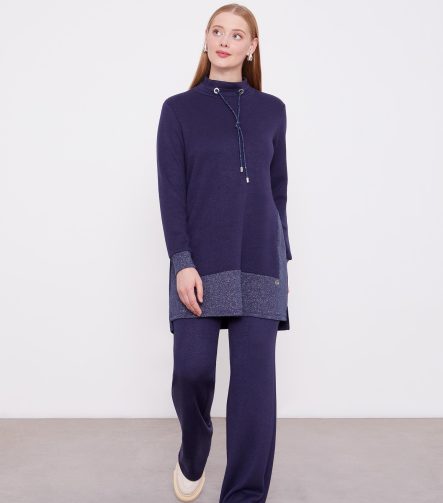 Navy Blue Glitter Cashmere Fabric Two-Piece Set