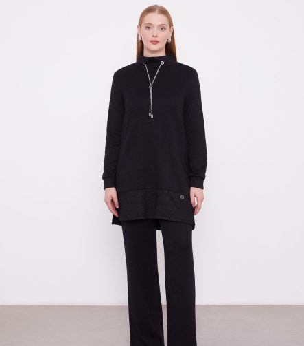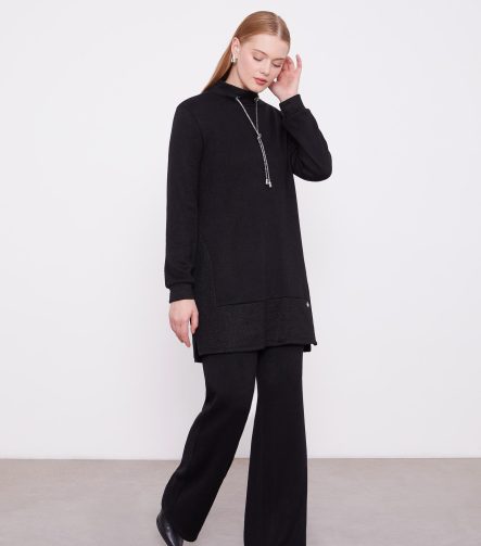 Petrol Green Glitter Cashmere Fabric Two-Piece Set