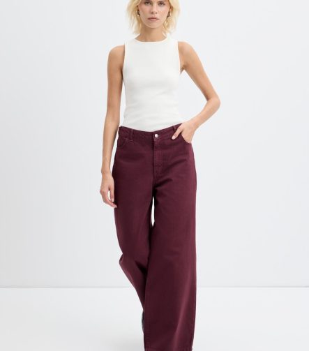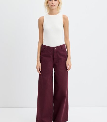 High-Waist Wide-Leg Gabardine Pants in Burgundy