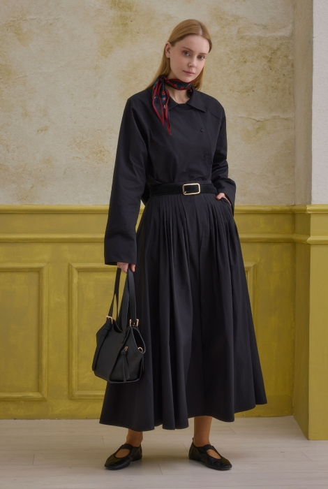 This skirt, made from 100% cotton fabric, offers breathable and skin-friendly comfort thanks to its completely natural fibers. Its paper-effect texture has a slightly thick structure with natural wrinkles, giving the design a unique character and elegance; these wrinkles are not uncomfortable. The ribbed details add movement and a refined structure to the skirt, making it easy to complete your everyday chic combinations.