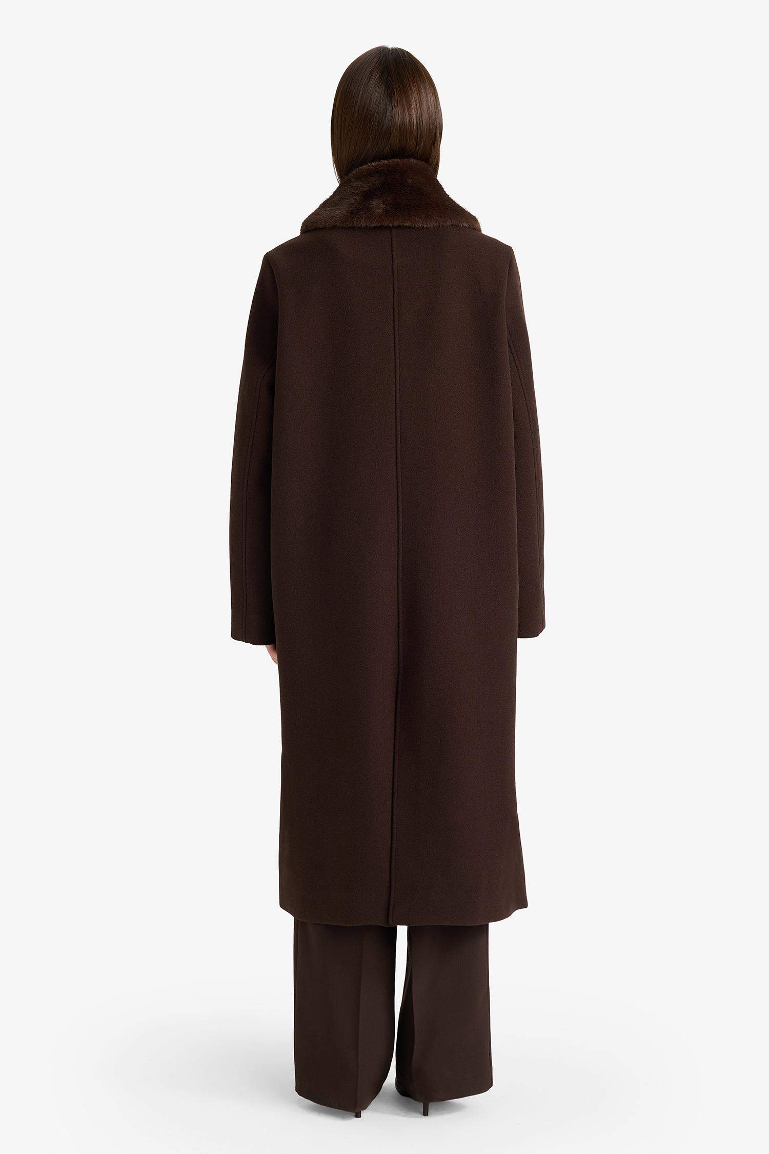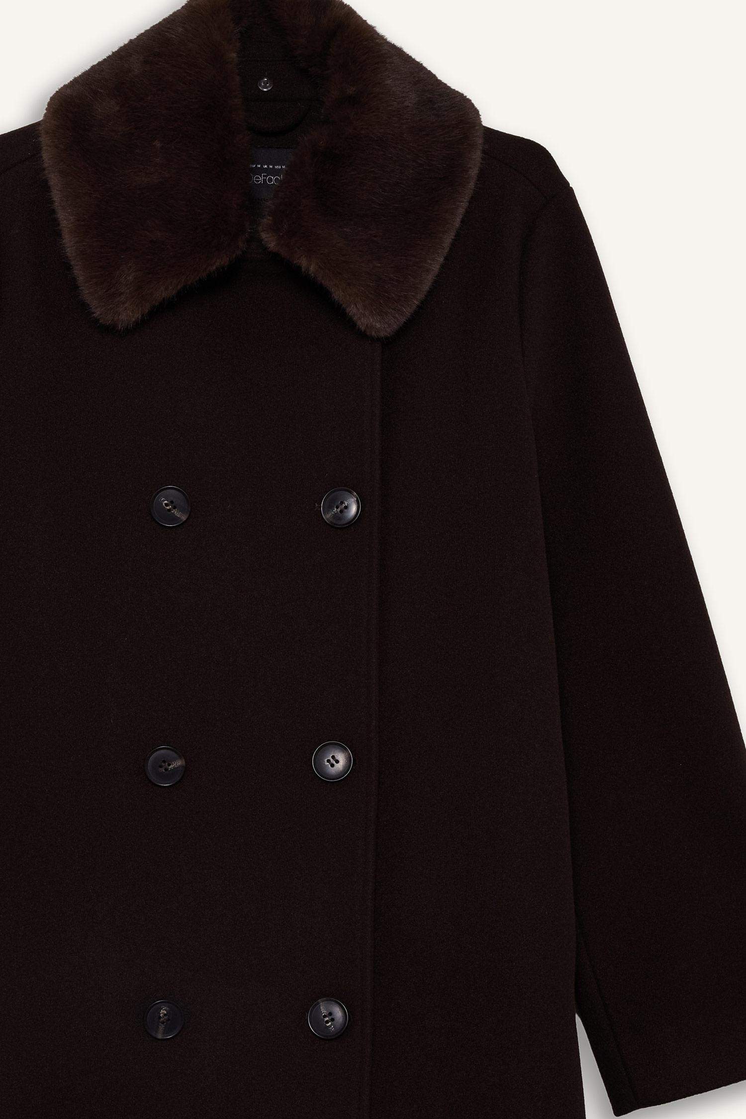 Tags: buttoned coat, detachable collar, elegant outerwear, faux fur, pocketed design, regular fit, trench coat, winter coat