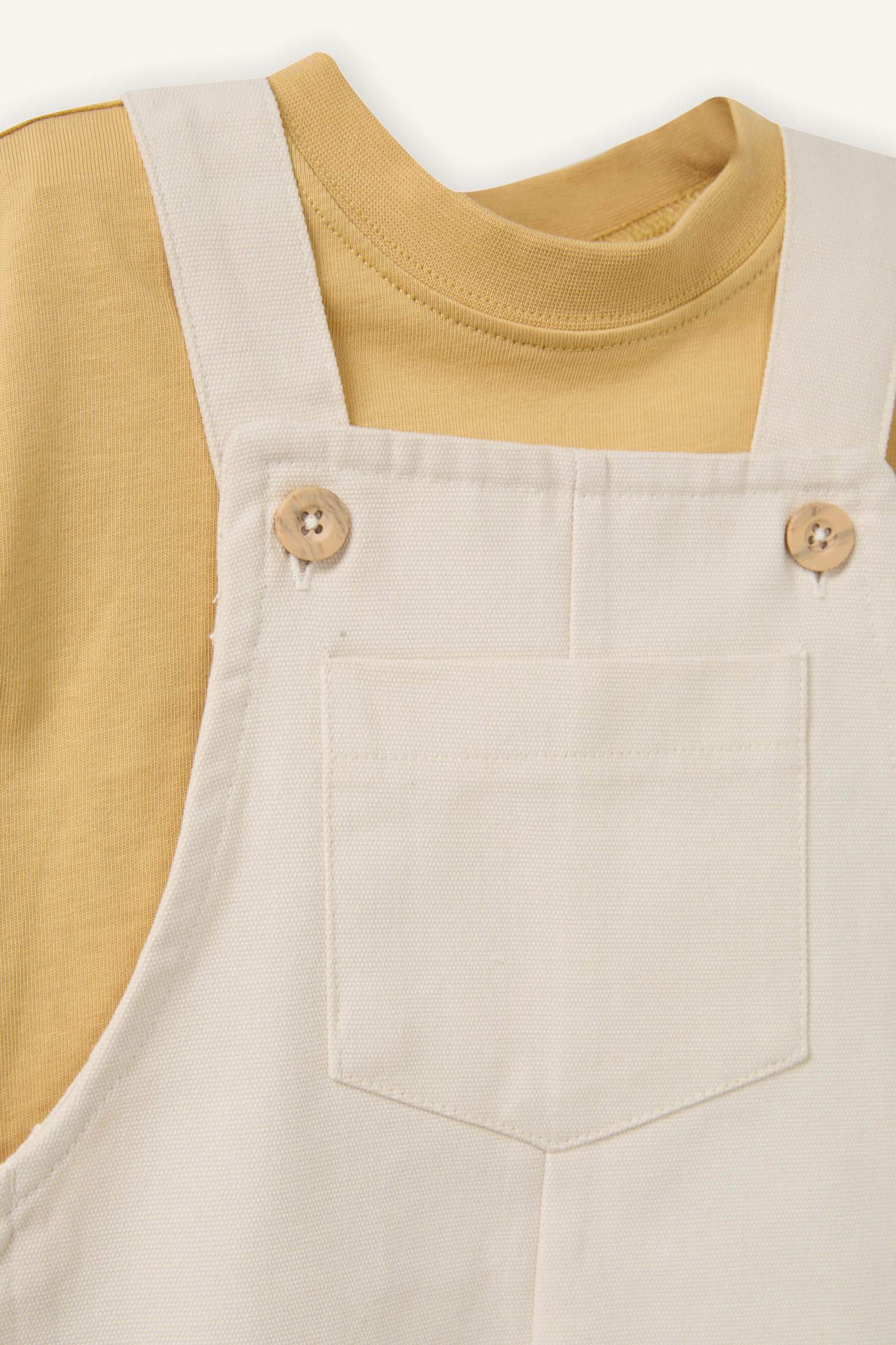 A stylish and comfortable 2-piece set for babies, consisting of a soft short-sleeved t-shirt and an adjustable strap romper. Its breathable fabric ensures your little one’s comfort all day long.
