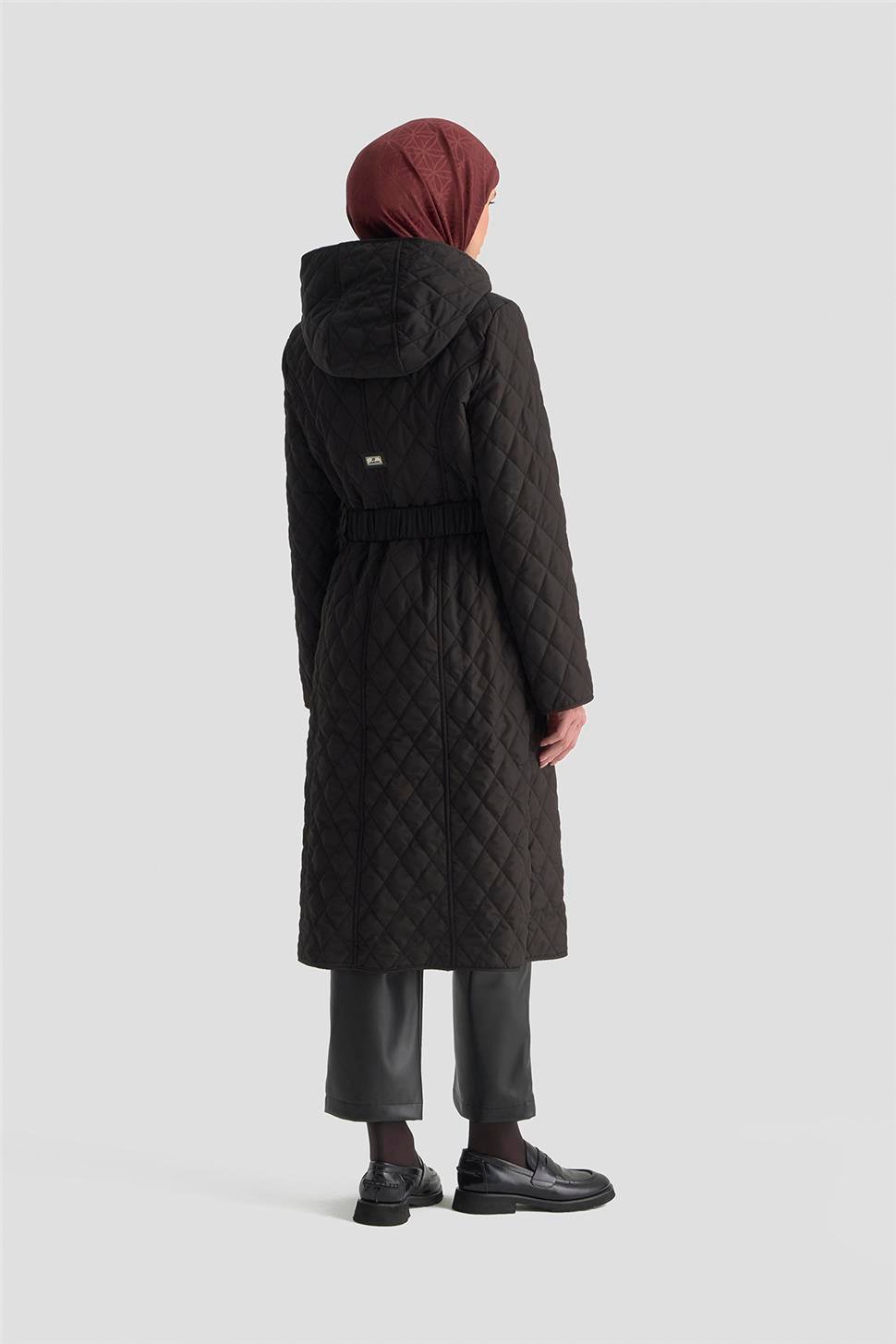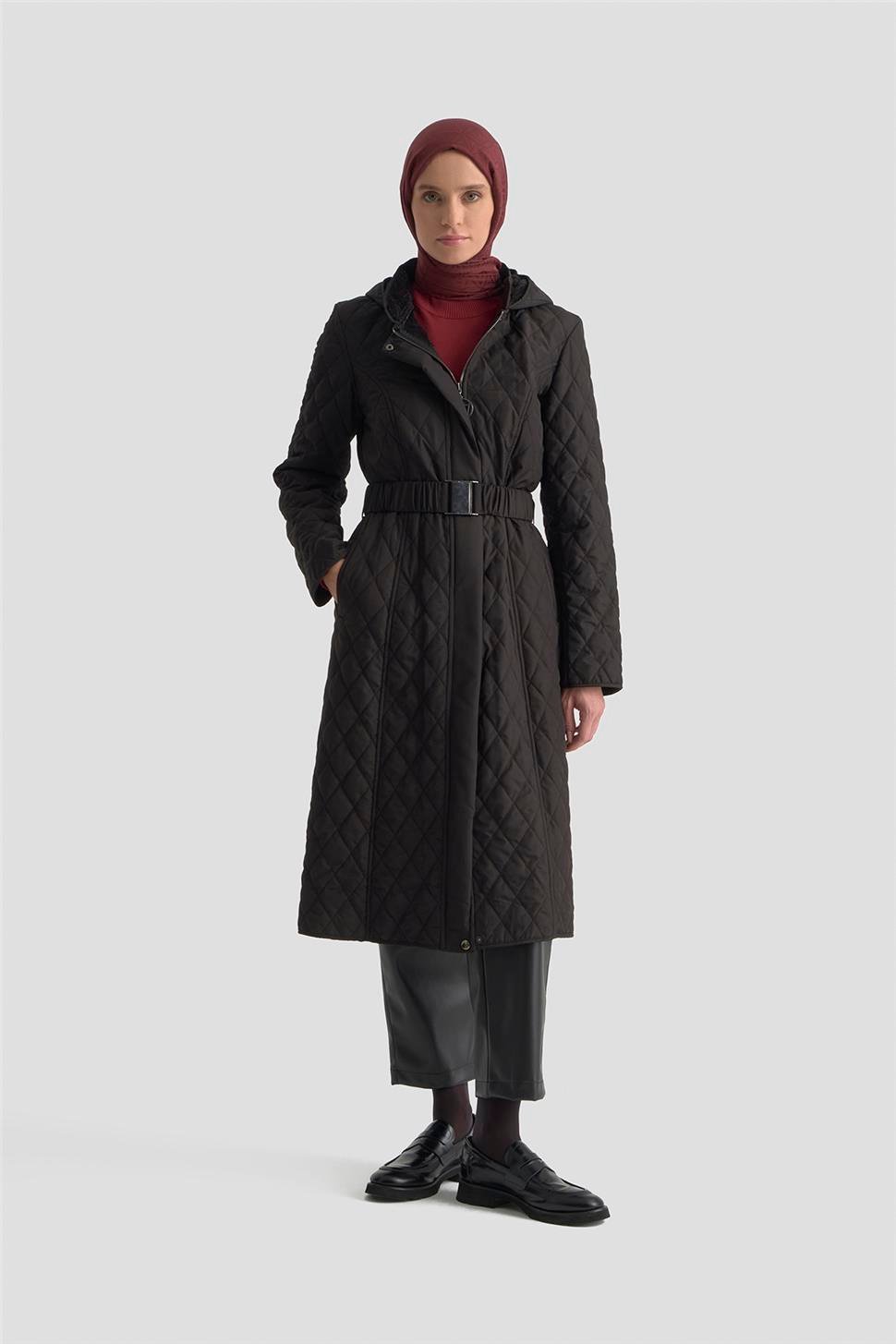 Armine Kemerli Kapitone Kaban 25KT706 Siyah