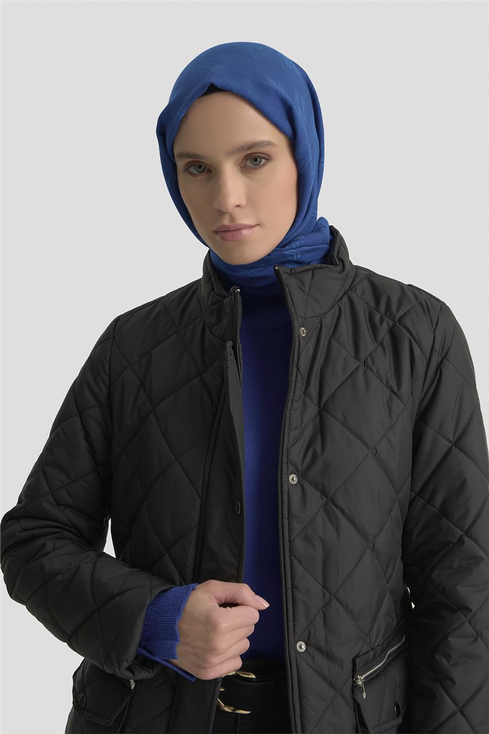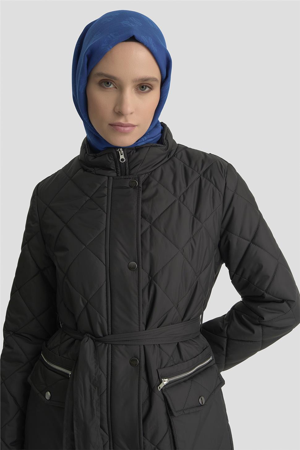 Armine Pocket Detail Fitted Quilted Coat 25KD1404 Black